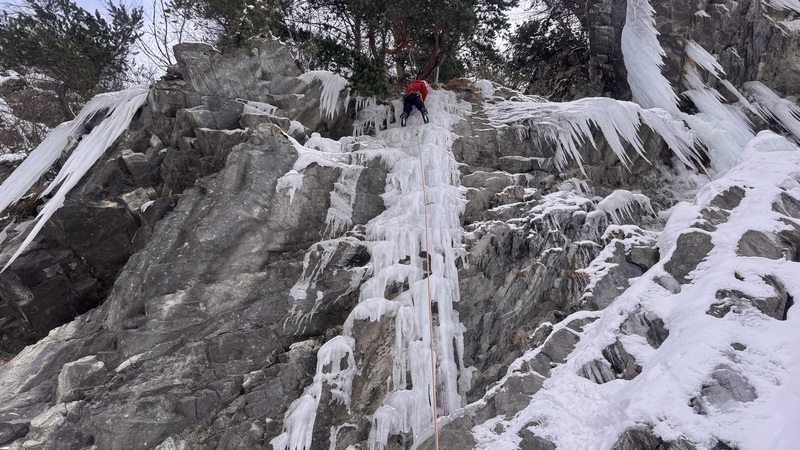 Belles conditions. Le mur de sortie à gauche est grimpable, crochetage, demandant un peu d’expérience (les 5 premiers mètres ne se protègent pas ).