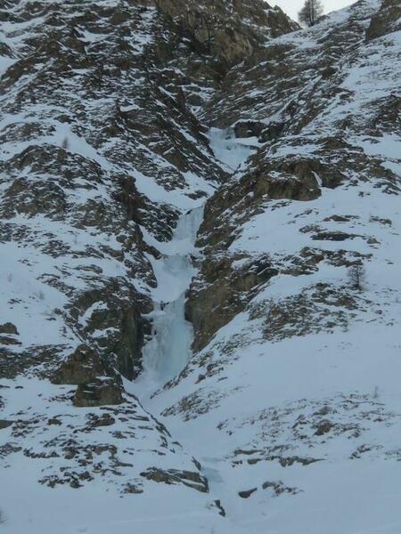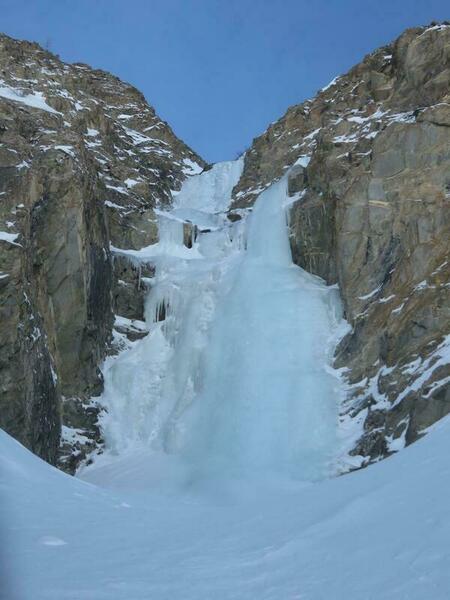 Cascade en bonnes conditions, tant en épaisseur qu'en qualité de glace. Au niveau neige ça brasse entre les ressauts. Redescente en 3 rappels sur abalakov, béquet et abalakov.
